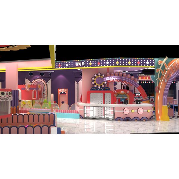Fun attractions : Rock climbing wall, ball pool, slide, volcano, trampoline, etc.